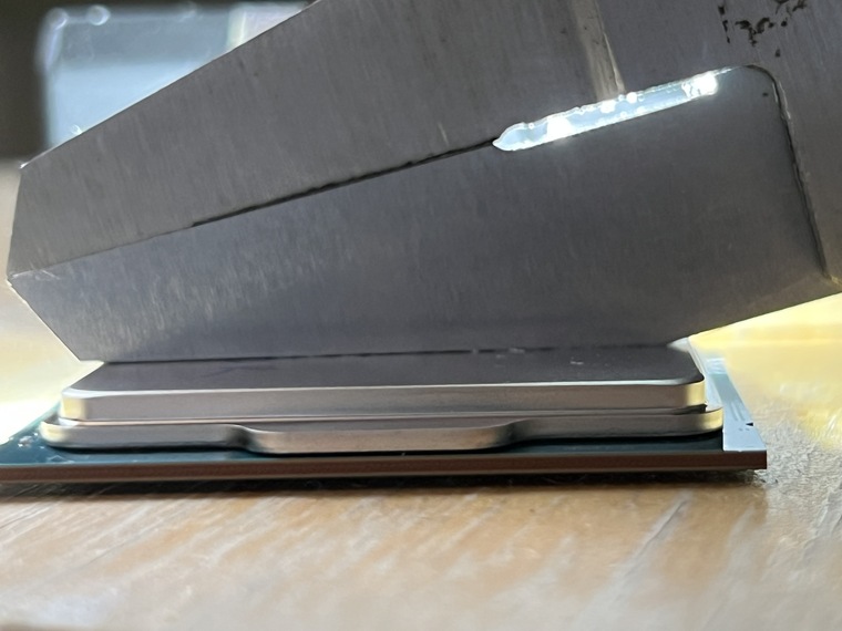Но вижу как минимум четыре варианта: — Нарушение технологии производства — Штатное состояние камня, зажатого сокетом без установленной системы охлаждения — Изначально заложенный прогиб крышки для правильного распределения нагрузки под установленной системой охлаждения — Кривой штангенциркуль |